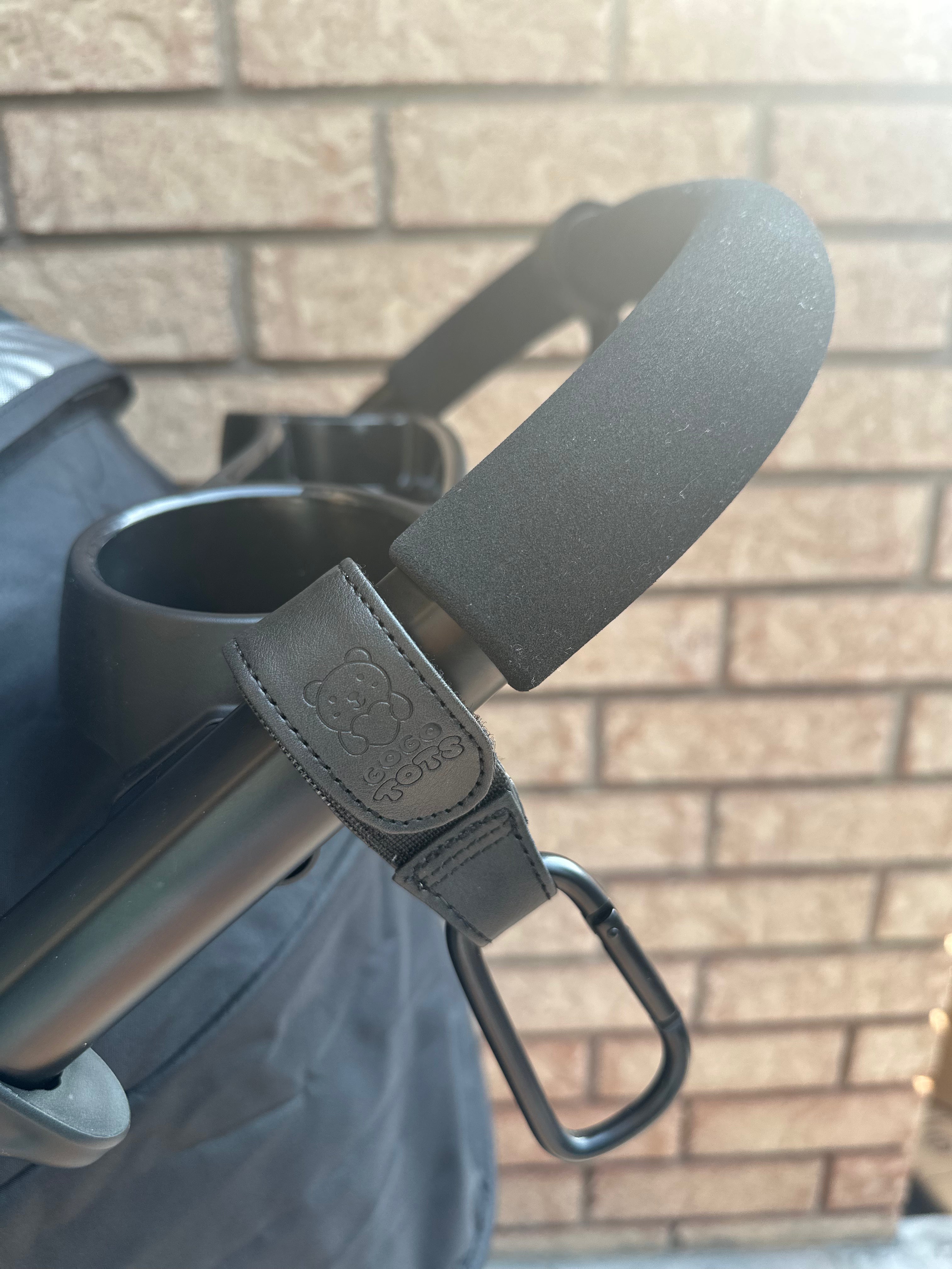 Stroller Hooks - Black - Premium Vegan Leather Velcro Straps